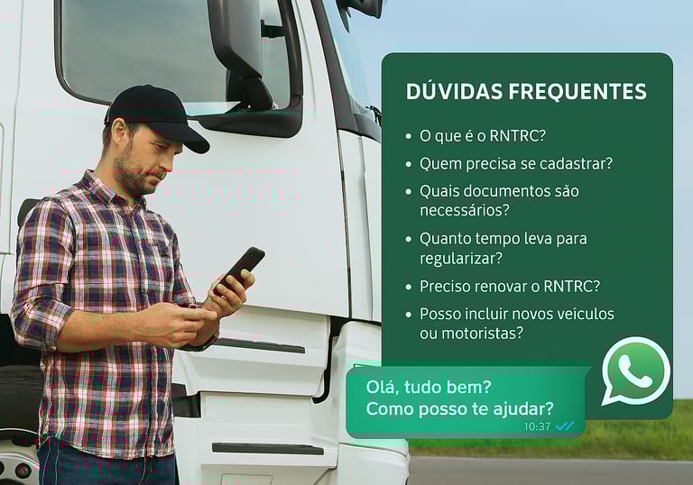 Nossa equipe realiza todo o processo de inclusão digital, garantindo que você e sua frota estejam regularizados sem burocracia. Basta iniciar o atendimento e enviar os documentos.
